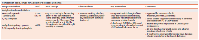 Comparison Table: Drugs for Alzheimer's Disease Dementia (online only)